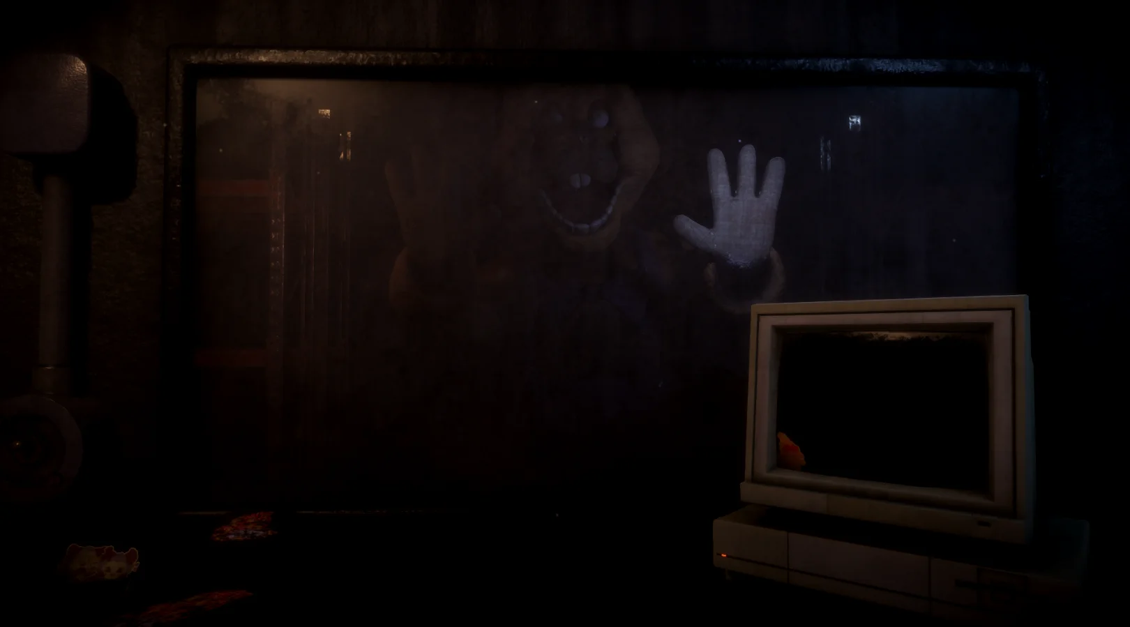 You're stationed in a storage room equipped with a window, a side door, and a CRT monitor. Each animatronic requires a different approach to survive: